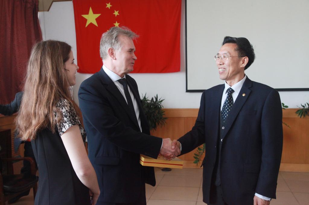 2017年4月20日上午,白俄罗斯国立经济大学副校长赫梅利尼茨基В.А一行4人来我校签署合作协议,校长王同坤、党委常委李佩国、财经学院及国际合作与交流处负责同志出席了签约仪式。