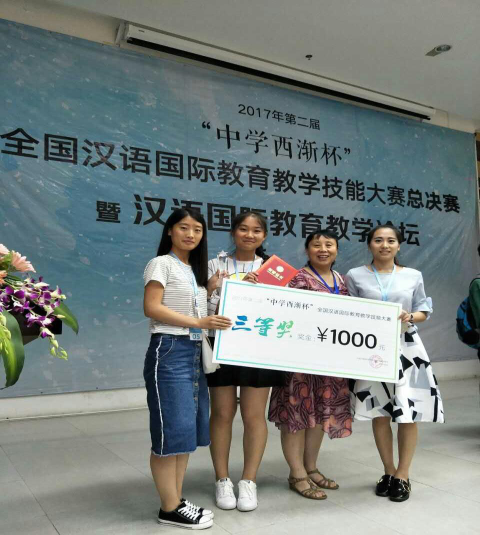 2017年6月3日,由中国教育电视台主办,集美大学承办的第二届“中学西渐杯”全国汉语国际教育教学技能大赛在厦门圆满落幕。共有来自全国65所高校200余名选手参加本次比赛,我校文法学院派出2015级汉语国际教育专业3位同学组成代表队首次参赛。