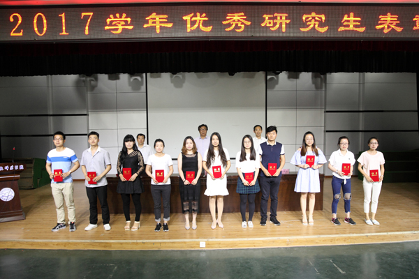 会议宣读了研究生国家奖学金、科技论文奖励(“博学”创新奖学金)、三好学生、优秀学生干部、优秀共青团员、优秀共青团干部、优秀毕业生等各奖项获奖名单,并为获奖研究生颁发了荣誉证书。