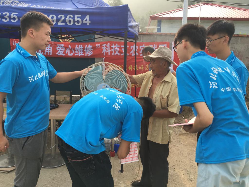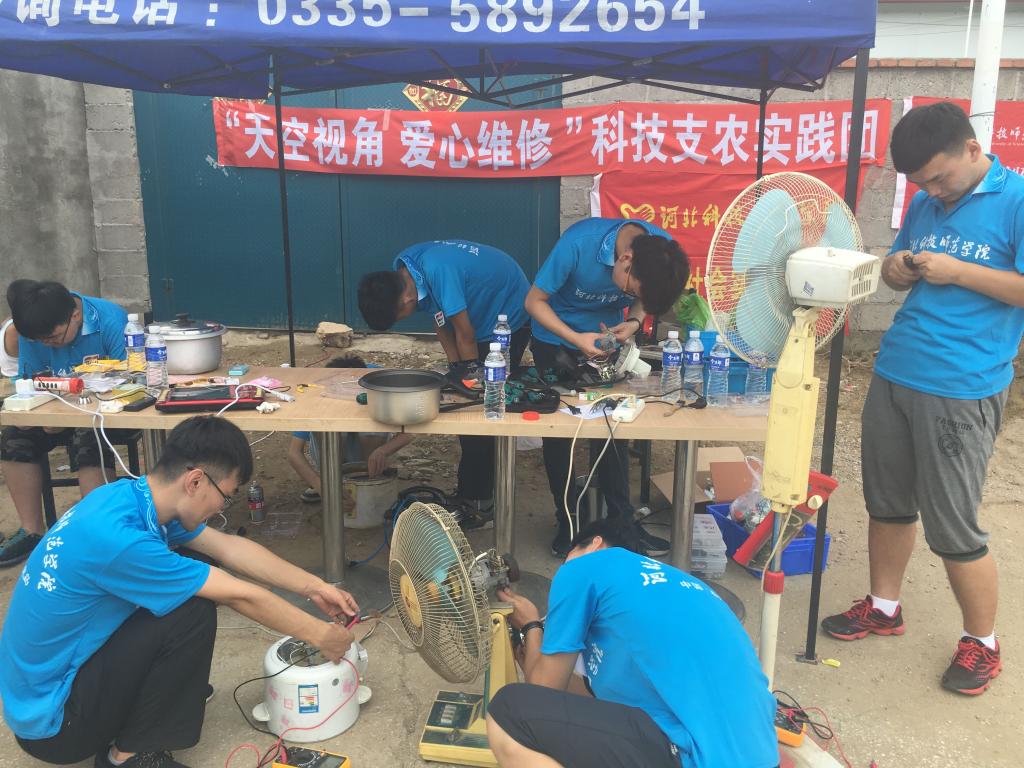 2017年7月15日,河北科技师范学院机电工程学院“天空视角,爱心维修”暑期社会实践小队翻山越岭来到青龙精准扶贫村张庄,经过前期宣传,后期维修,克服了种种困难,大学生志愿者们在实践中修炼专业技能,体验到浓浓地乡情,和谐融入父老乡亲之中,为炎炎酷暑中的村民送去清风。