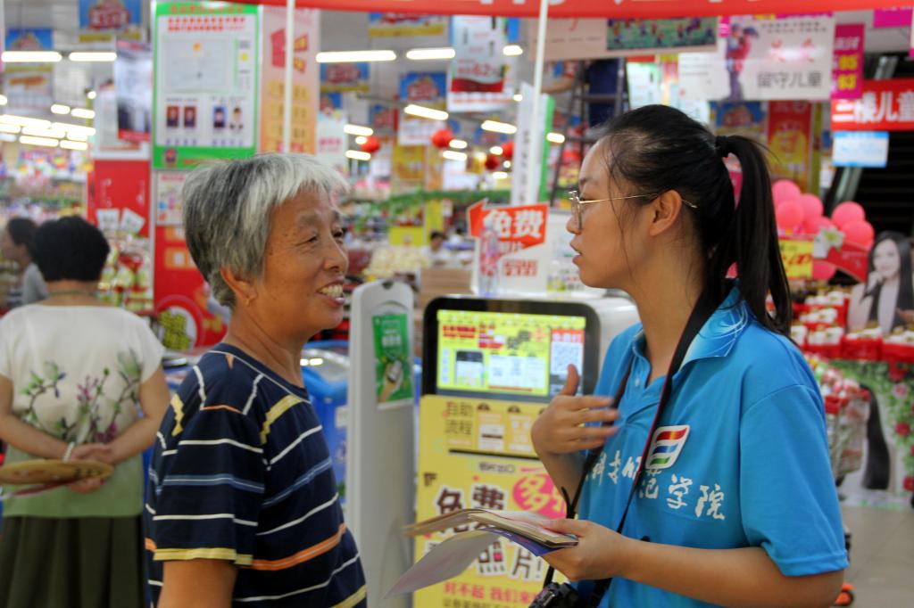 7月17日下午,携诚社会实践小分队成员在家惠超市内进行了征信及反假币宣传并进行了相关内容的调查。150余名群众接受了队员们关于爱护人民币的介绍,现场学习新版人民币辨别真伪的方式方法。50余人接受问卷调查。