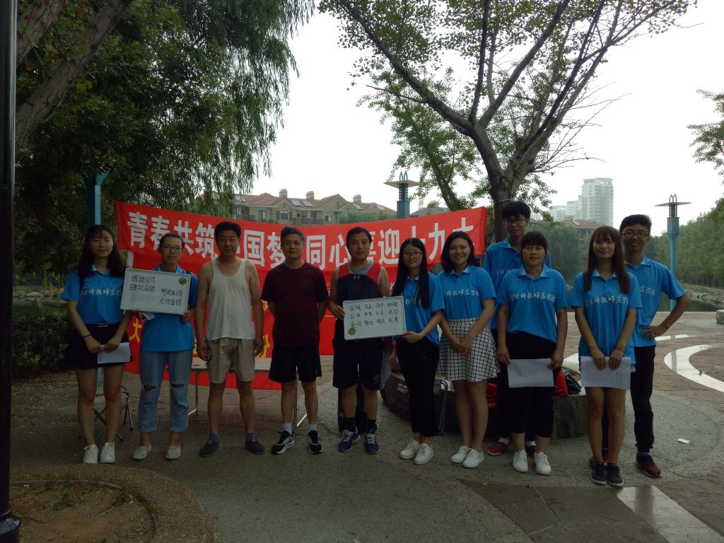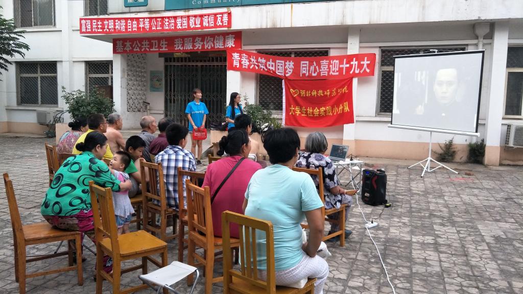 实践团成员分别走访了汤河公园、学校家属区、森林逸城公园、奥林匹克公园、海边、森林逸城小区、玉柴公交汽车站等多个地点,开展了形式多样的宣讲活动。实践团组织观看了爱国影片《建党伟业》,重温党的发展历史和革命历程。发放历届党代会宣传单,回顾党史,了解革命先烈的红色青春。邀请市民诵读红色诗歌和演唱红色歌曲,弘扬老一辈革命家的爱国情怀。组织市民默写“四个自信”和“社会主义核心价值观”,坚定不忘初心跟党走的理想信念。讲解自制宣传板,从科技、教育、经济等角度,总结十八大以来党和国家取得的阶段性成果。组织有奖知识问答,促进市民了解近年来国家经济发展的阶段性成果。