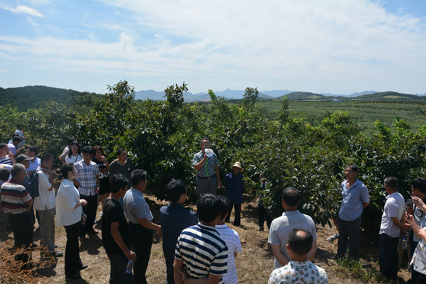 25日,他又带领参训的青龙县果树技术骨干到我校苹果示范基地——抚宁区榆关镇东周庄村、板栗示范基地——抚宁镇英山河村进行参观学习。这两个基地均应用了我校最新的栽培管理技术,实现了高效、省力化栽培,取得了良好的经济效益和示范效果。这次技术培训展示了我校新科技成果——果树倒置嫁接技术,拓宽了广大果农的视野。果农们纷纷表示,将尽快把先进技术落实到实际生产中,进一步提升板栗、苹果栽培管理技术水平。(编辑:李学锋 审核:唐代清)