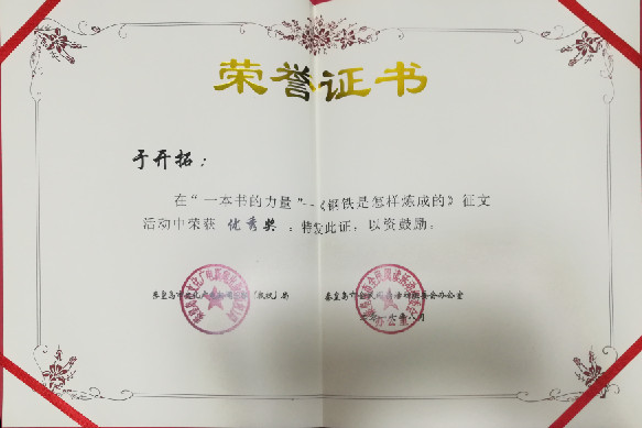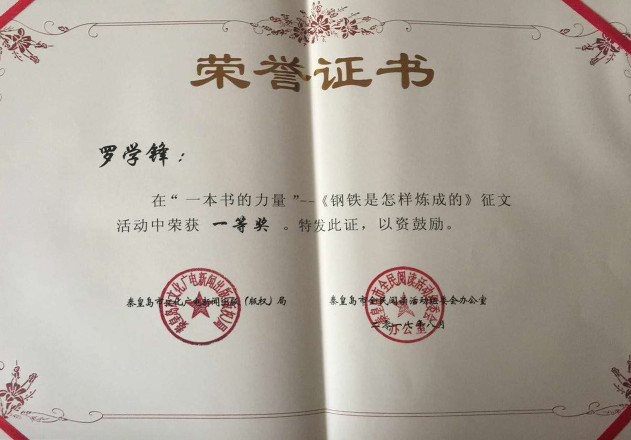 日前,2017年秦皇岛市全民阅读征文活动结束,我校外国语学院罗学锋、于开拓两位老师参加了本次征文活动,分别获得一等奖和优秀奖。