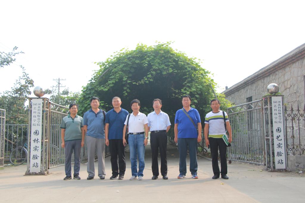 2017年9月8日上午,内蒙古包头市九原区政府副区长杜林春、林业局长王补德、农牧局长侯林、水务局长何继保、包头市“信步闲庭”农业观光企业老总周外军先生等一行5人来到昌黎校区,对园艺科技学院杨俊明教授科研团队选育的‘滨海翠’柽柳新品种进行了专题考察。