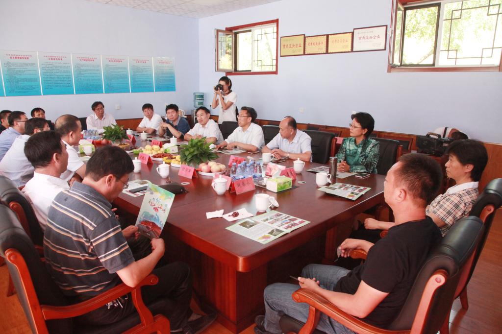 随后,靳占忠、王同坤等学校党政领导一行同唐山市滦县政协主席孙太和及县、镇领导和唐山友顺农业开发发展有限公司董事长武铁友等进行了座谈。双方就“校企合作”产学研基地下一步发展愿景进行了深入交流与探讨。这也是继我校与唐山友顺农业开发发展有限公司在滦县鸡冠山生态农业产业园举行产学研合作签约仪式后的又一次深入交流。