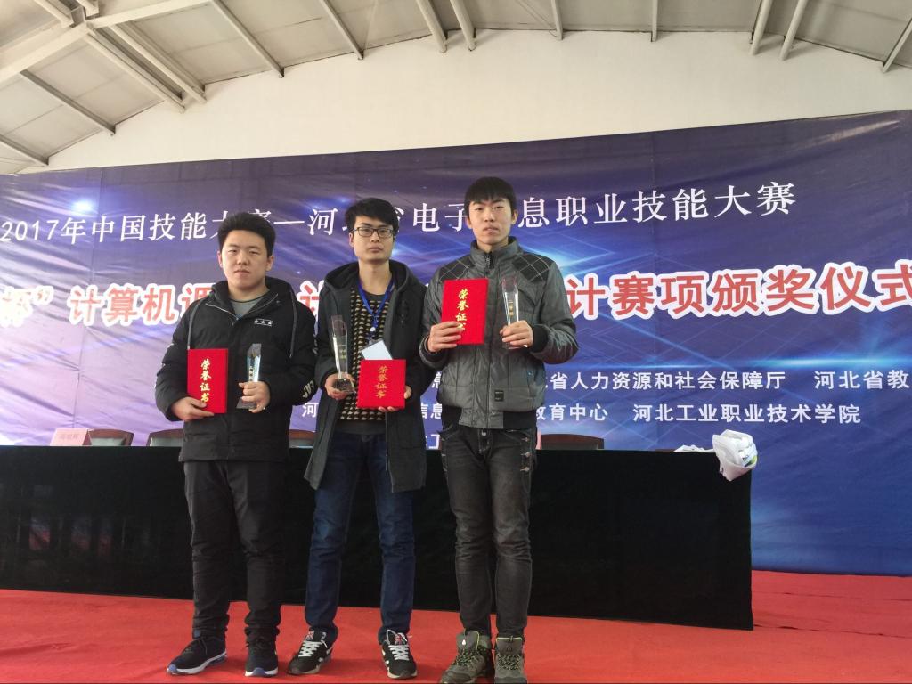 2017年12月16日,“2017年中国技能大赛——河北省电子信息职业技能大赛”在河北工业职业技术学院拉开帷幕。由机电学院陈芳老师带领张磊、杜江山、潘家鑫三名同学组成的团队,参加了“计算机辅助设计”项目的角逐,并取得佳绩,荣获团体二等奖1项、个人一等奖1项、个人二等奖1项、个人三等奖1项。