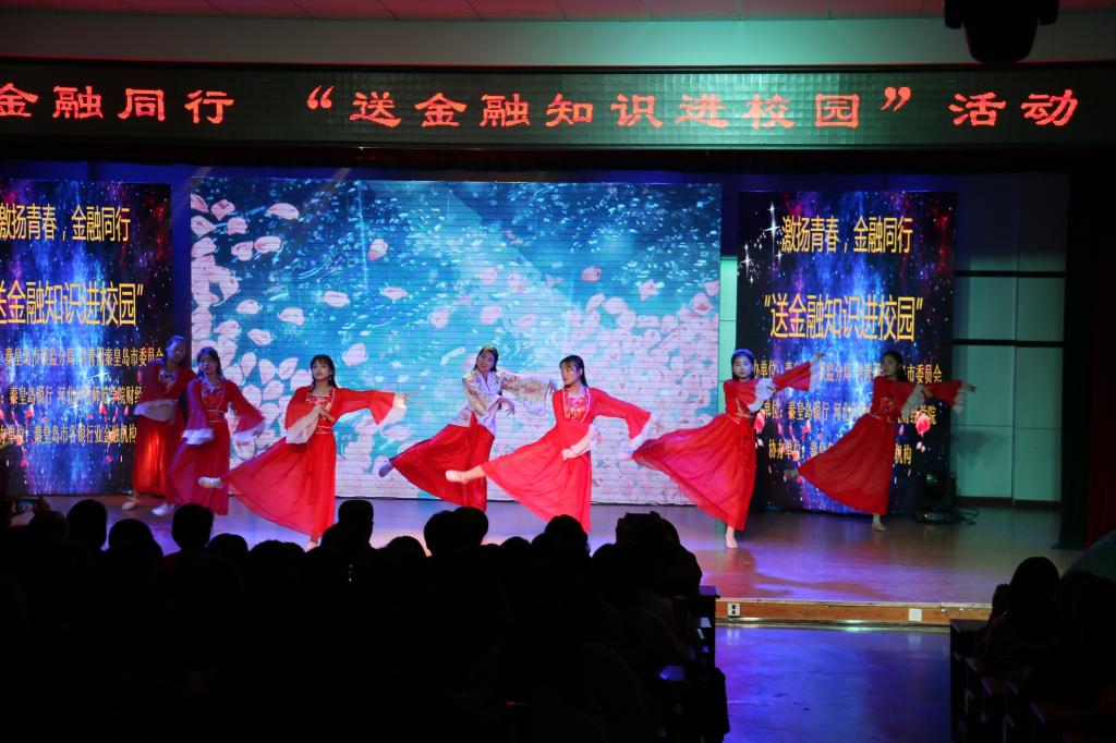 秦皇岛市银监分局纪委书记孙丽宁致辞,对加强银校合作维护良好金融生态环境寄予厚望。文艺汇演参演节目全部由全市银行业金融机构和我校财经学院学生自编、自演,以大学生易于接受的形式将金融知识穿插其中,通过微电影、公益广告、舞蹈、话剧、歌曲、乐器表演以及金融知识有奖问答等形式,让大学生怀着愉快的心情学习金融知识,提高风险防范能力。在文艺汇演的同时,秦皇岛市银监分局还通过设置咨询台和展板、发放宣传材料等形式宣传金融知识。本次活动受到了大学生的热烈欢迎,吸引了近400名师生参与其中。