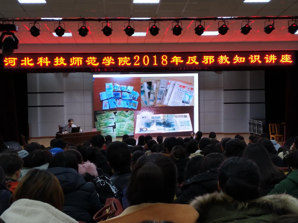 2018年11月21日、23日,我校分别在开发区校区、秦皇岛校区举行了反邪教知识讲座。学生处负责人、学校反邪教志愿者、各班级反邪教宣传员、辅导员(班主任)和学生代表等共580余人聆听了讲座。