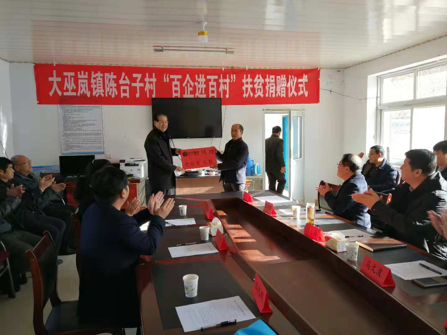 2018年11月29日上午,秦皇岛宏兴钢铁有限公司捐助陈台子村帮扶款捐赠仪式在陈台子村部隆重举行,青龙县委常委、县委办主任马立峰,青龙县政协主席马文波,昌黎县政协副主席、县工商联主席贾旭涛,昌黎县工商联副主席樊蕊,秦皇岛市宏兴钢铁有限公司党委副书记、工会主席王志明,大巫岚镇镇长张海富及我校驻陈台子村工作组全体成员、陈台子村两委班子成员和村民代表共20余人出席了捐赠仪式。本次捐赠仪式由我校驻陈台子村第一书记王伟主持。