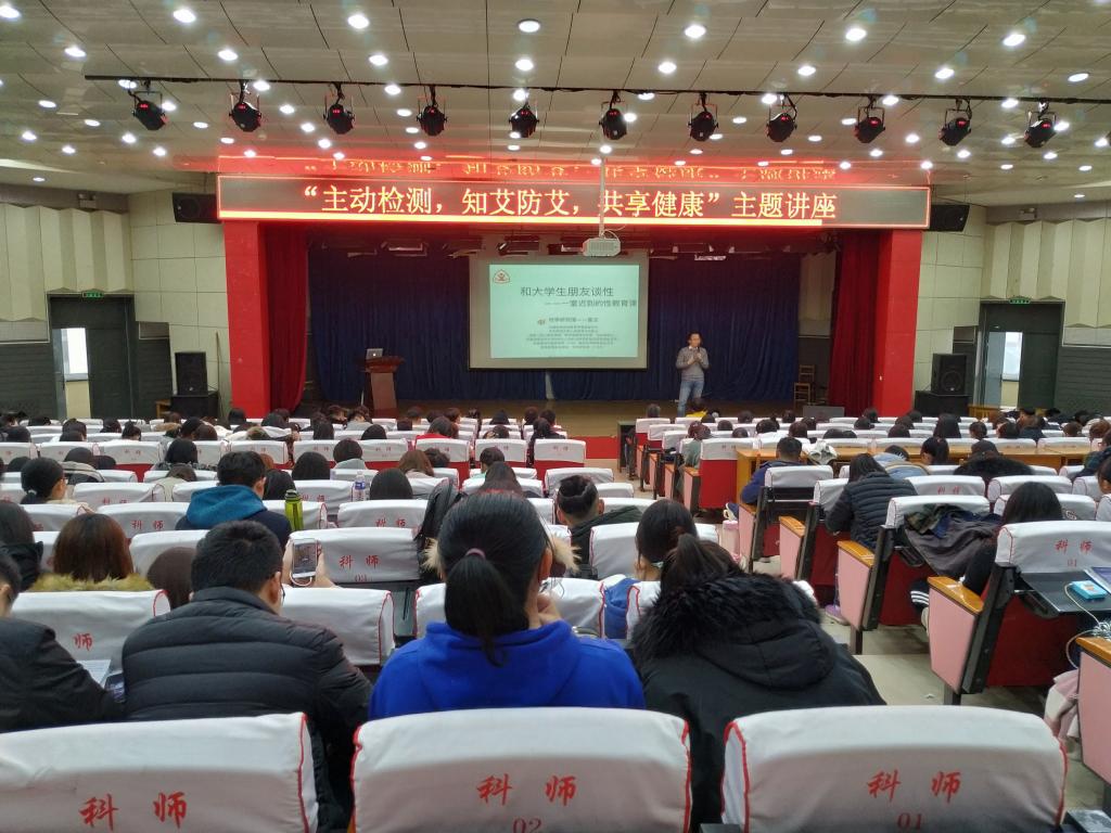 在第31个“世界艾滋病日”即将到来之际,为宣传大学生群体性健康和防艾知识,倡导大学生理智科学对待性爱知识,提高大学生自身防护意识,校医院特邀请中国性学会性教育专委会秘书长、国家二级心理咨询师童力老师作为主讲人,于11月26日、27日分别在我校三个校区举办“主动检测,知艾防艾,共享健康”主题讲座,我校三个校区近千名同学聆听了讲座。
