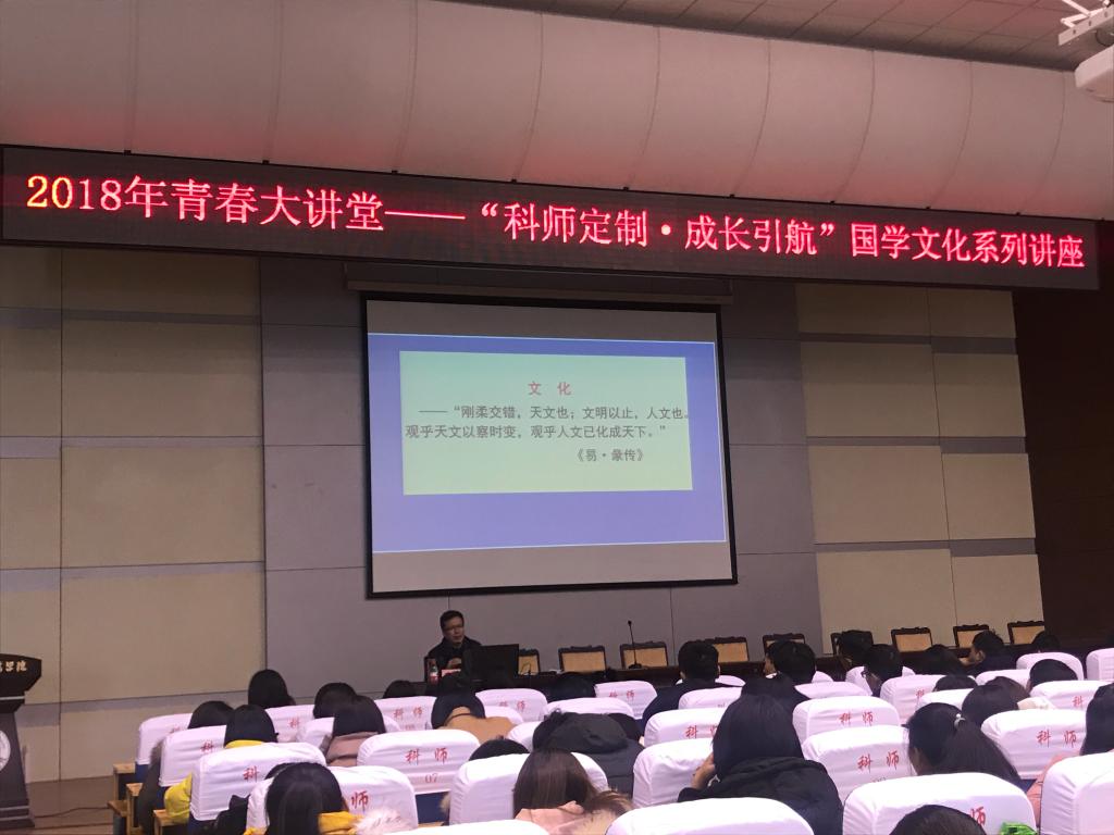 截至目前,我校“青春大讲堂—科师定制˙成长引航”已经连续三年开展“国学文化类”讲座20场,受到了同学们的普遍欢迎,在校园内营造了弘扬传统文化浓厚氛围。(编辑:孙艳敏 审核:唐代清)