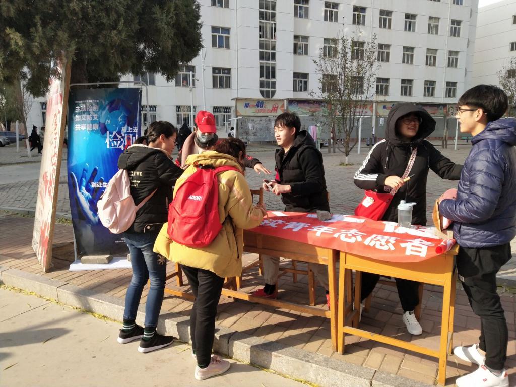 12月1日,秦皇岛校区青年志愿者协会开展了“世界艾滋病日”教育宣传活动,在校园摆放宣传板,面向同学发放《青春健康知识手册》,并联合校医院开展“主动检测,知艾防艾,共享健康”为主题的条幅签名活动,在向同学们普及防艾知识的同时,倡导同学们参与艾滋病防治工作中,让同学们远离艾滋病危害。12月3日,在“国际残疾人日”当天,昌黎校区青年志愿者协会与昌黎县残疾人联合会共同开展了了“科师助梦行”关爱残疾人志愿服务活动,同学们与残疾人士谈心,了解他们的日常生活,并帮助他们扫了室内外卫生。活动当天天气寒冷且下起了小雨,但是依然阻挡不了青年志愿者们想要为残疾人奉献爱心的热情,活动收到昌黎县残疾人联合会工作人员的一致好评。12月4日,在我国第五个“国家宪法日”,开发区校区各级青年志愿者协会在校园以及周边社区开展了主题宣传活动,同学们通过在校园摆放宣传板、主题条幅签名、宪法宣传进社区、举办主题宣讲会等形式,向广大师生和周边市民宣传宪法知识,弘扬宪法精神,增强民众的法制观念,取得了良好效果。12月5日,我校各级青年志愿者协会以及“付华”志愿服务大队组织我校千余名志愿者,开展了摆放自行车、清洁宣传栏、打扫教室、清理小广告、社区志愿服务、关爱福利院儿童、传统文化进校园等多种多样的志愿服务活动。