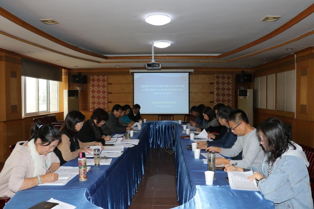 在顺利完成我校2018年中小学教师“国培”和省培任务后,2019年10月16日下午,继续教育学院组织我校教育学院、文法学院、艺术学院和农学与生物科技学院的行政负责人、中小学教师培训项目负责人及主要管理人员召开了2018年中小学教师培训工作总结和2019年中小学教师培训项目启动工作会议。