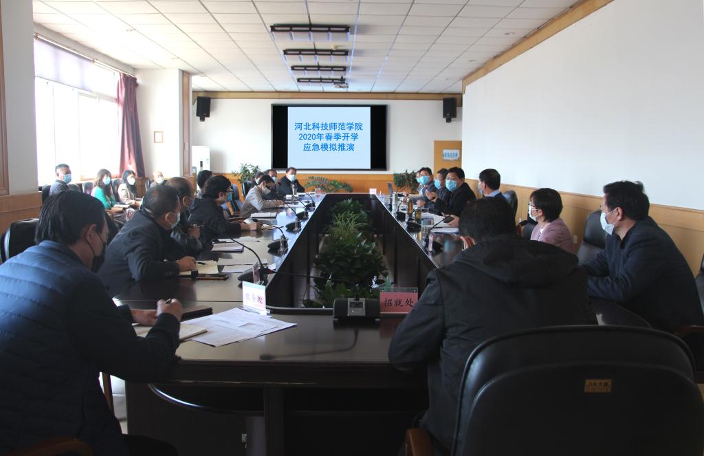 为保障2020年春季学期开学工作安全、平稳、有序进行,4月2日下午,我校在秦皇岛校区逸夫楼大会议室组织召开2020年春季开学第二次应急模拟推演,进一步细化、具体化学校疫情防控和开学复课各项准备工作。校领导郭鸿湧、张福喜、蒋爱林出席会议。学校新冠肺炎疫情应急处置小组成员和数信学院相关领导、辅导员参加会议。