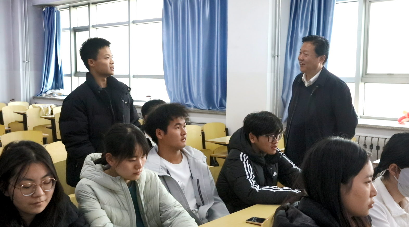 会前,王松副书记走进开发区校区课堂,为教育学院、艺术学院、文法学院、机电工程学院的100余名学生代表讲授思政课,就增强思政课的思想性、理论性、亲和力和针对性,与同学和老师们互动交流,听取大家对思政课程优化完善提升的具体意见建议。