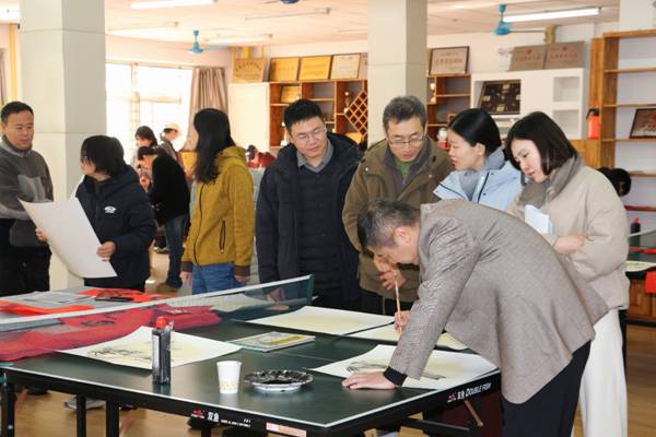 2026年1月5日上午9时,由学校党委宣传部指导,工会主办教工书画协会承办的“科师·家文化之迎春纳福”笔会在校工会活动室成功举办。校党委副书记王松、党委宣传部王荣加、离退休办公室刘超、校团委乔潇、城市建设学院赵建平、财经学院李强华、招生就业处于明来及各分工会主席和工会会员共同参与,以笔墨寄情,以丹青绘福,为师生送上春祝福。