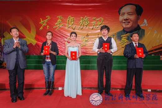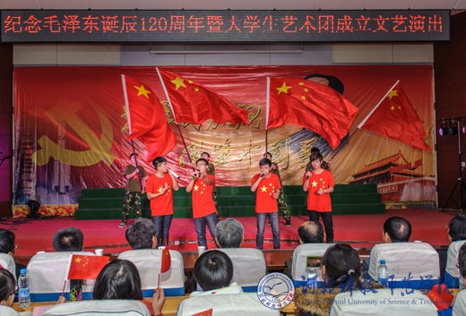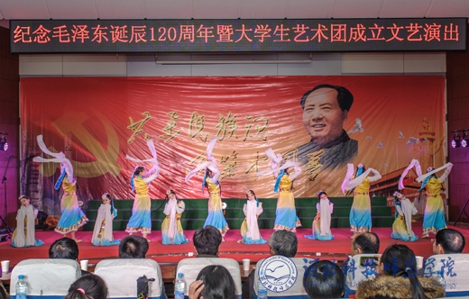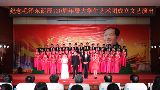 12月20日、21日、22日,由党委办公室、党委组织部、党委宣传部、党委学工部、校团委主办,校大学生艺术团承办,艺术学院、离退休人员管理办公室协办的纪念毛泽东同志诞辰120周年文艺演出分别在昌黎校区、秦皇岛校区和开发区校区举行。党委副书记宋绍富、副校长郭国维、党委常委李佩国、副校长张福喜观看了演出。