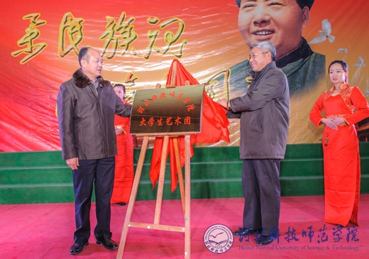 党委副书记宋绍富、副校长郭国维为大学生艺术团成立揭牌