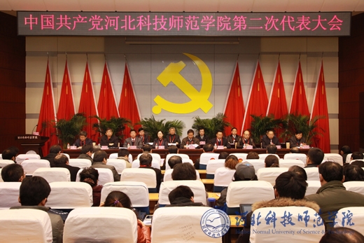 2012年12月30日上午10:00,中国共产党河北科技师范学院第二次代表大会第四次会议暨闭幕式在秦皇岛校区学术交流中心隆重举行。来自全校不同工作岗位的 195名正式代表出席了大会第四次会议暨闭幕式。