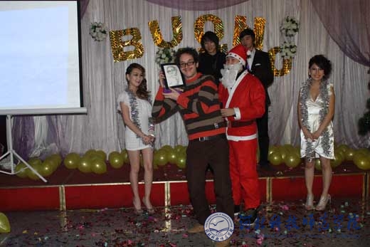 2011年12月31日,我校举办留学生2012年迎新年联欢晚会。国际交流中心、国际合作与交流处领导和部分中外教师出席晚会并观看了演出。国际交流中心主任、国际合作与交流处处长东方阳教授首先向外籍教师和留学生祝贺新年,并给优秀留学生奖学金获得者颁发了奖品和荣誉证书。整场晚会高潮迭起,留学生们用动感热烈的舞蹈、极具异域风情的鼓乐表演、优美动听的歌曲和风趣幽默的师生互动节目一次次点燃了现场观众的激情。晚会在欢乐祥和的氛围中落下帷幕。(编辑:孙艳敏 审稿:赵建平)