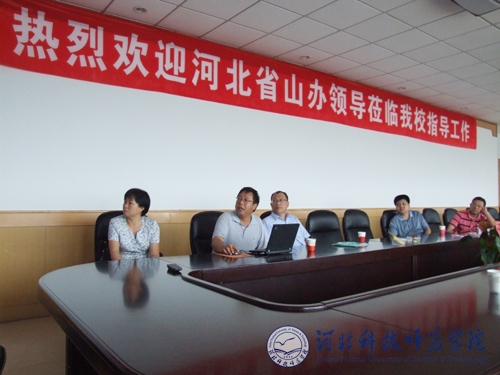 2010年8月22日上午,河北省山区经济技术开发办公室耿建良副主任、 工作人员李毅来我校考察指导工作。我校王同坤副校长、科研处杨越冬处长、闫立英副处长和园艺科技学院项殿芳院长、食品科技学院李军院长和康维民副院长、生命科技学院乔亚科副院长、动物科技学院杨宗泽副院长出席汇报座谈会。