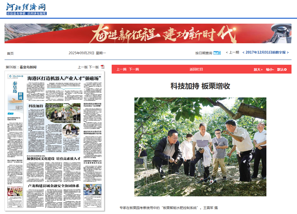 10.092025《河北日报》:智能管理板栗 亩产翻两番【板栗研究中心】