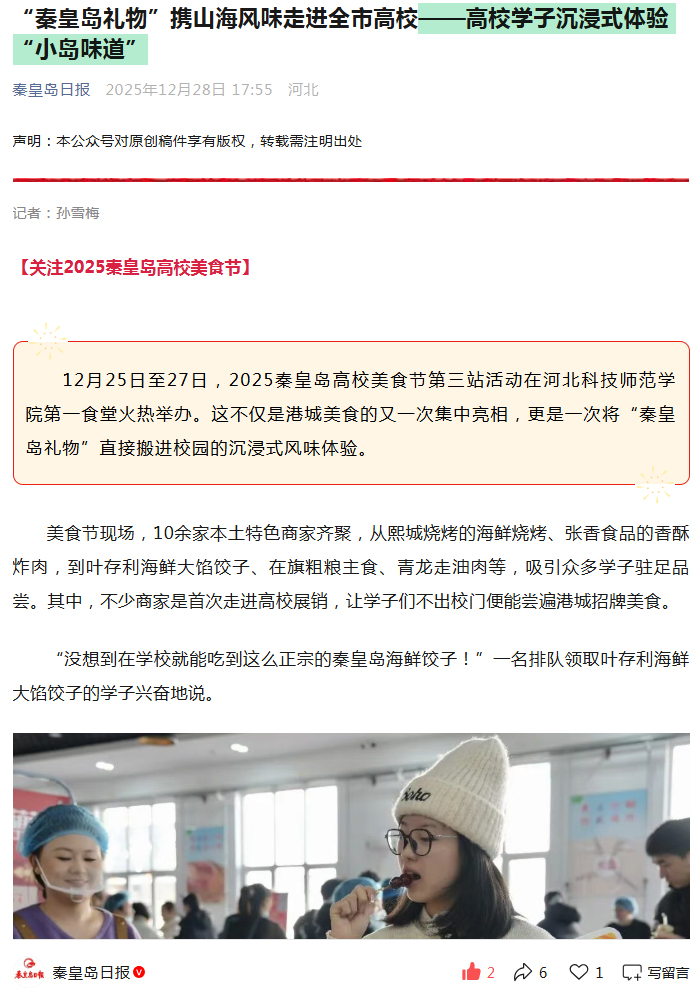 01.092026《秦皇岛日报》:“秦皇岛礼物”携山海风味走进全市高校——高校学子沉浸式体...