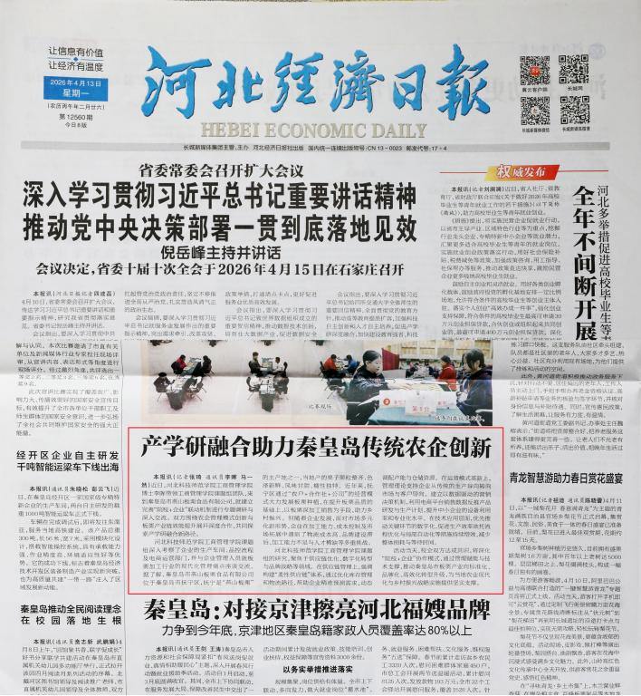 04.142026《河北经济日报》:产学研融合助力秦皇岛传统农业创新【工商管理学院】