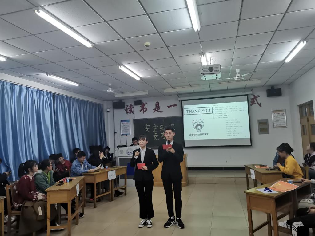 11月9日晚,城市建设学院在逸夫楼的510教室成功举办安全知识竞赛活动。此次竞赛活动共分为必答题,抢答题,风险题三个环节,内容涉及防诈骗、人身安全、交通安全、财产安全等多方面内容。经过激烈角逐,2019级工程造价专业获得一等奖。