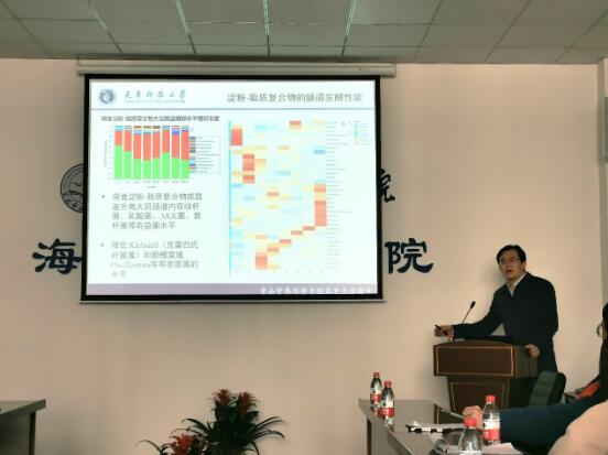 王书军教授分别围绕食品中淀粉和蛋白质等大分子碳水化合物的结构与功能、淀粉的营养消化性、热加工过程中淀粉和蛋白质等营养成分的变化与互作三个方面详细阐述了其课题组的研究工作,深入浅出地阐述了淀粉类碳水化合物的研究背景、淀粉二元和三元复合物的研究意义以及三元复合物的相关研究手段与方法,重点讲解了淀粉-脂质-蛋白质相互作用的具体案例,并分享了其课题组近期的创新性研究成果。