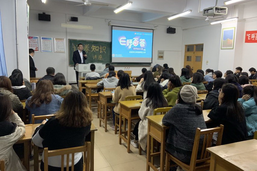 讲座中,佟德顺概述了我国证券行业的发展历史和发展趋势,讲解了证券交易的基础知识,重点讲解了交易所交易基金(即ETF)的相关知识,详细介绍了由上海证券交易所、中国证券投资基金业协会联合举办的“E呼百答”——首届ETF知识大赛具体情况,普及ETF投资知识和投资风险,引导投资者树立理性投资、价值投资意识。