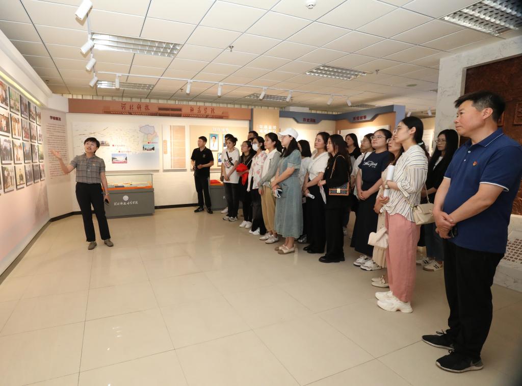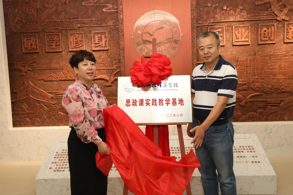 党委宣传部、马克思主义学院负责同志首先为“河北科技师范学院思政课实践教学基地”揭牌。之后,与会人员参观了校史馆,感受学校八十余载的风雨历程,观看了学校视频宣传片。大家边听边看,边学习边交流,学校传统、校园文化、办学成就及师生风采一次又一次的浮现在眼前,走进老师们的心里,同时深深感受到自身使命光荣、责任重大。
