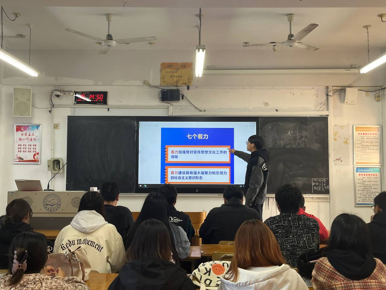 全院共有22个团支部,约640名团员青年参加了学习活动。各班团支部根据学院党委的学习要求认真组织学习了指定的网站内容、多篇重要文献和理论文章等,聚焦用党的创新理论武装全党,教育人民这个“首要政治任务”和“新的文化使命”,深入学习党的创新理论。