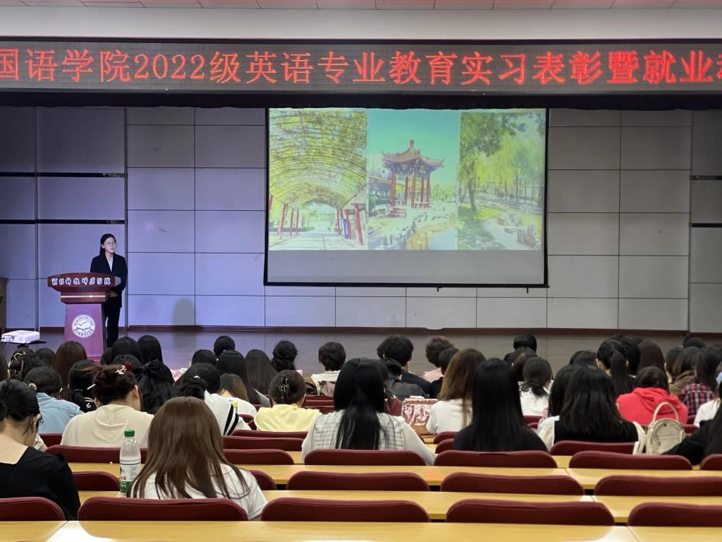 2025年9月25日,外国语学院在多功能厅召开英语专业教育实习表彰暨就业动员大会,该专业2022级全体同学以及部分2023级学生参加了大会。大会全面回顾了上个学期的教育实习成果,表彰了在实习期间表现优异的同学,为师生提供了分享经验、交流心得的平台,并对大家今后的就业指明了方向,进一步推动了师范生培养质量的提升。