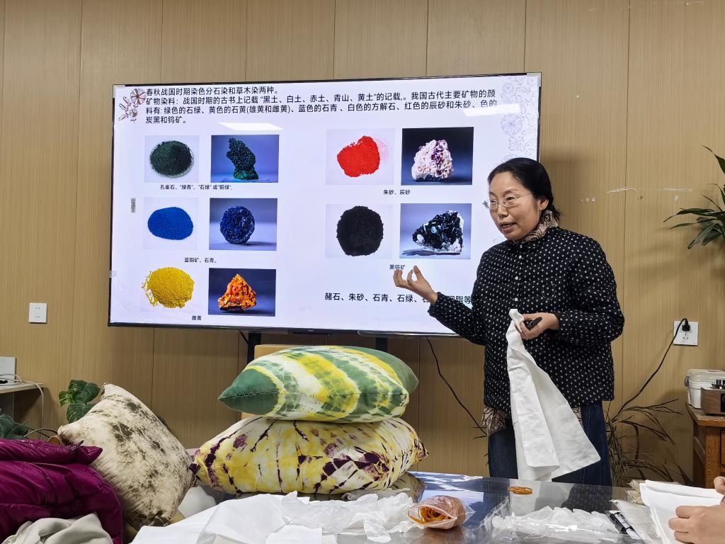 本次活动特邀学院扎染/蜡染非遗传承实践者贾辉老师亲临现场授课指导,带领全体女教职工沉浸式制作扎染抱枕,近距离感受传统扎染技艺的独特魅力。贾辉老师深耕非遗传承与教学领域多年,长期带领学生开展扎染创作与非遗推广工作,曾带队参与央视《大美秦皇岛》节目拍摄,全力助力地方文旅发展与非遗文化传播,有着丰富的教学实践与非遗推广经验。