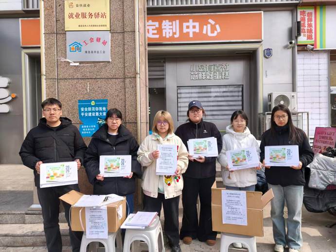 食品科技学院刘素稳教授课题组团队的研一学生们搬着精心设计的科普资料前往民生路兴龙广缘百货附近进行发放和健康知识科普宣传,揭秘淀粉相关健康知识、破解控糖低脂饮食及肠道养护等日常健康难题,将实用易懂的健康干货送到群众手中,让理论知识融入日常生活,守护群众全年身心健康。