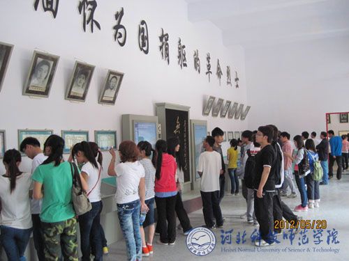 2012年5月20日,食品科技学院党委委员王振老师带领学院全体入党积极分子到昌黎烈士陵园参观学习。在一位位烈士的照片和遗物前,在一幅幅反映历史的画面前,在象征英烈精神永远不灭的长明火和无名烈士墓前,同学们深深钦佩先烈们为了民族的解放、国家的独立和人民的幸福,抛头颅、洒热血的革命精神和英雄气概,深切缅怀为祖国和人民献出生命甚至连名字都没有留下的千千万万烈士们。