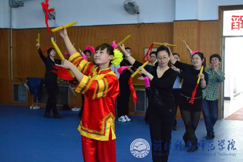 2012年4月16日,艺术学院在开发区校区开展了艺术大讲堂活动。艺术学院舞蹈教学部的师生与昌黎艺术团的演员们在学院舞蹈教室进行了艺术交流。昌黎艺术团的演员们为同学们表演了具有地方民间特色,被列为国家级非物质文化遗产名录的“昌黎秧歌”。演员们那扎实的基本功和精彩的表演以及“绝活”展示,让同学们大开眼界。扮演“妞、蒯、丑”的演员分别对三个角色的基本动作和基本技巧进行了讲解和示范,并与同学们进行了现场互动,同学们进一步增加了学习和传承我国的民间艺术,舞蹈教学民族化的积极性。(编辑:孙艳敏)