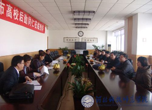 2011年11月15日,河北联合大学、唐山师范学院、唐山学院等高校后勤集团及唐山市大学生公寓村负责人一行10人到我校秦皇岛校区考察后勤服务工作。我校后勤服务总公司副总经理于明来、苏小滨、王敏刚及相关负责人陪同座谈交流。 副总经理于明来介绍了学校的基本情况及后勤服务总公司的组织架构、用工管理、物业管理现况。(编辑:孙艳敏 审稿:赵建平)