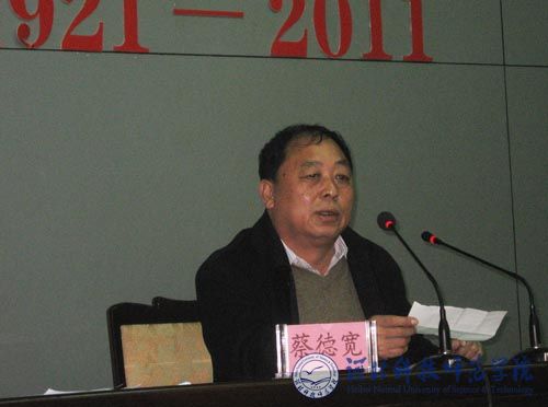 2011年12月1日,全国人大代表、山海关区石河镇副镇长、望峪山庄董事长蔡德宽同志应思政部的邀请来我校作了关于《怎样做好基层共产党员》的报告。思政部马列教研室全体教师及近500名学生听取了报告,报告由思政部副主任闫连朵主持。