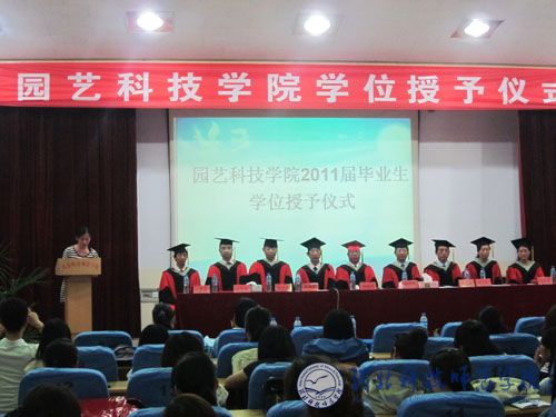6月14日上午,园艺科技学院在昌黎校区举行2011届毕业生学位授予仪式。园艺科技学院党委书记杨俊明,院长项殿芳,党委副书记、副院长李佩忠,副院长齐永顺及学工办老师、教学部主任等师生代表共250余人参加了本次学位授予仪式,仪式由党委副书记、副院长李佩忠主持。