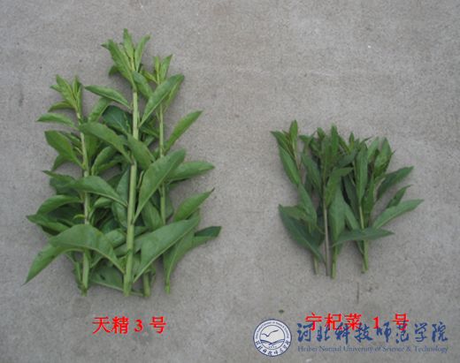 天精3 号是采用生物染色体工程技术培育的养生保健蔬菜新品种,该品种具有强大的染色体倍性优势,比二倍体生产对照品种宁杞菜1号增产131.1%;蛋白质含量40.76%(干基);必需氨基酸总量高于对照品种36.5%%,氨基酸总量高于对照品种27.6%;药用成分黄酮、枸杞多糖、甜菜碱含量分别为3.83%、3.36%、3.83%;抗癌元素硒、锌、铁分别高于对照品种105.8%、367.0%、83.3%。