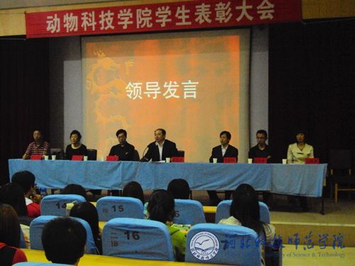 2010年5月14晚,动物科技学院在昌黎校区学术报告厅召开了2009—2010学年度学生工作表彰大会。动物科技学院党政领导及相关教师、学生参加会议。