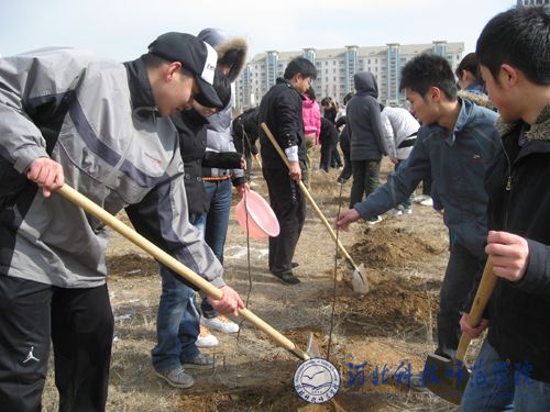 2010年3月25日、26日,我校文法学院在开发区校区开展了“播撒绿色青春”主题植树活动。200余名文法学院师生参加了植树活动,在开发区校区规划植树范围内种植了上百棵树苗,为扮靓我校开发区校园发挥了积极作用。