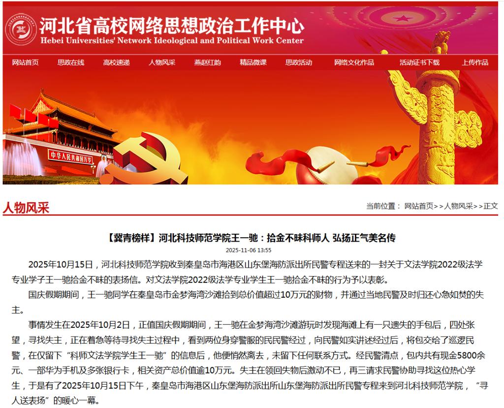 11.062025河北省高校网络思想政治工作中心网:【冀青榜样】河北科技师范学院王一驰:拾...